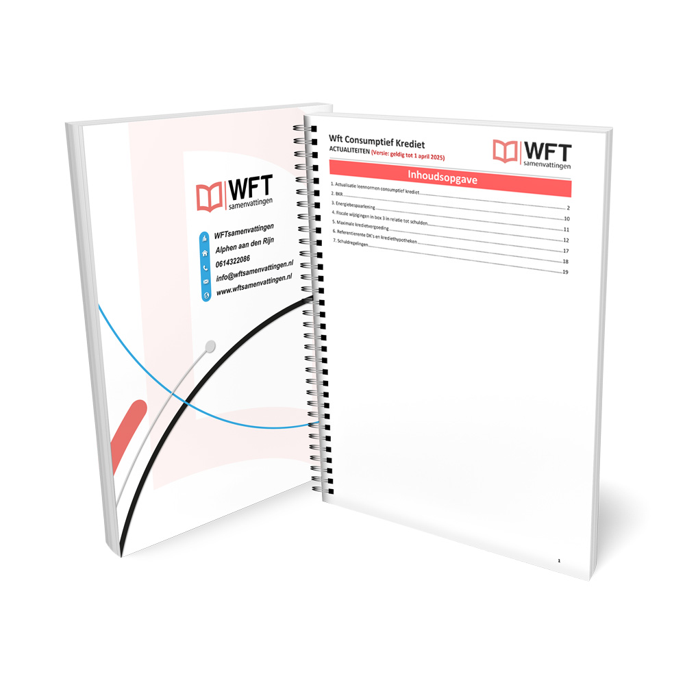 Op het reguliere Wft Consumptief Krediet examen kunnen ook enkele vragen over de recente ontwikkelingen in het vakgebied worden getoetst. We bespreken deze onderwerpen in dit document: de Wft Consumptief Krediet Actualiteiten. Aan bod komen:
