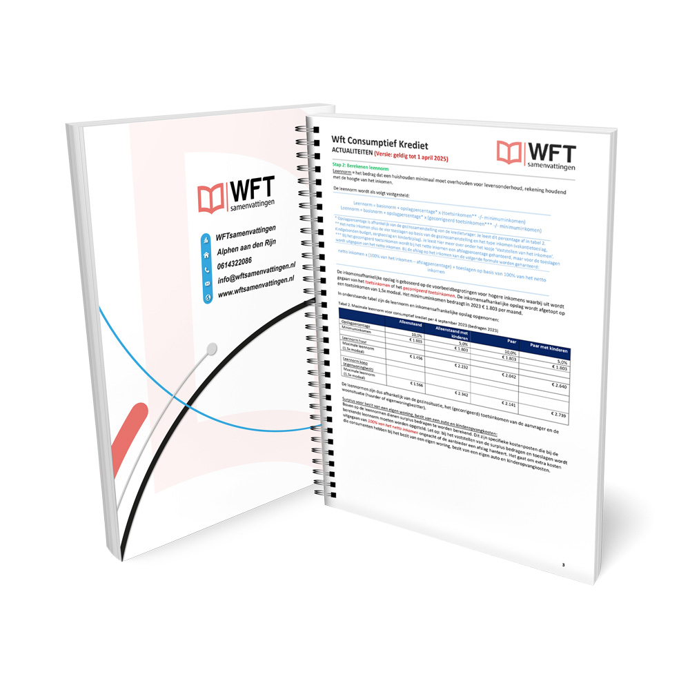 Naast de Wft Consumptief Krediet Actualiteiten, kun je bij ons ook gebruikmaken van een Samenvatting van het gehele cursusboek en een extra document met Berekeningen. Je kunt deze producten bekijken door hieronder op de linkjes te klikken: