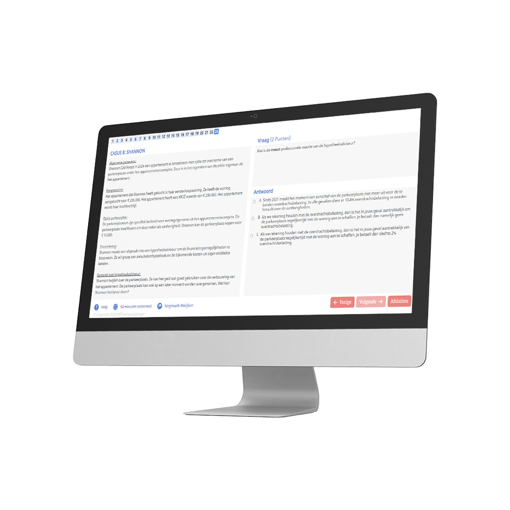 Ook proberen we met de lay-out en vraagtypes zo goed mogelijk aan te sluiten op het echte Wft PE examen. Zo kun jij je tijdens het echte Wft PE examen focussen op de vragen en word je niet verrast door de wijze van toetsing. Van onze cursisten hebben we begrepen dat dit als zeer fijn wordt ervaren. Oefen jij met ons mee?