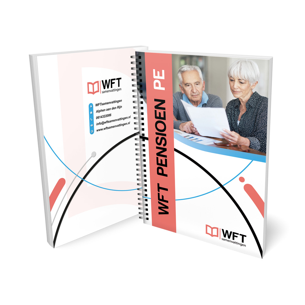 Je ontvangt ten eerste de Wft Pensioen PE Samenvatting. In deze Samenvatting bespreken wij alle recente ontwikkelingen in het vakgebied die jij moet kennen voor het Wft PE examen. We behandelen de onderdelen Wft Basis, Wft Vermogen en Wft Pensioen. Voor Wft Basis leer je onder andere meer over de basisbeurs, depositogaranties en de vergelijkingskaart.